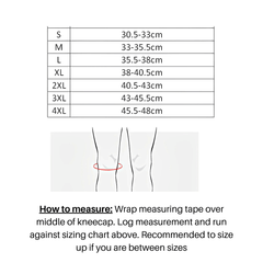 Measure around your kneecap for the perfect fit. When in doubt, consider sizing up for a bit more comfort. Click Here for the sizing chart.
